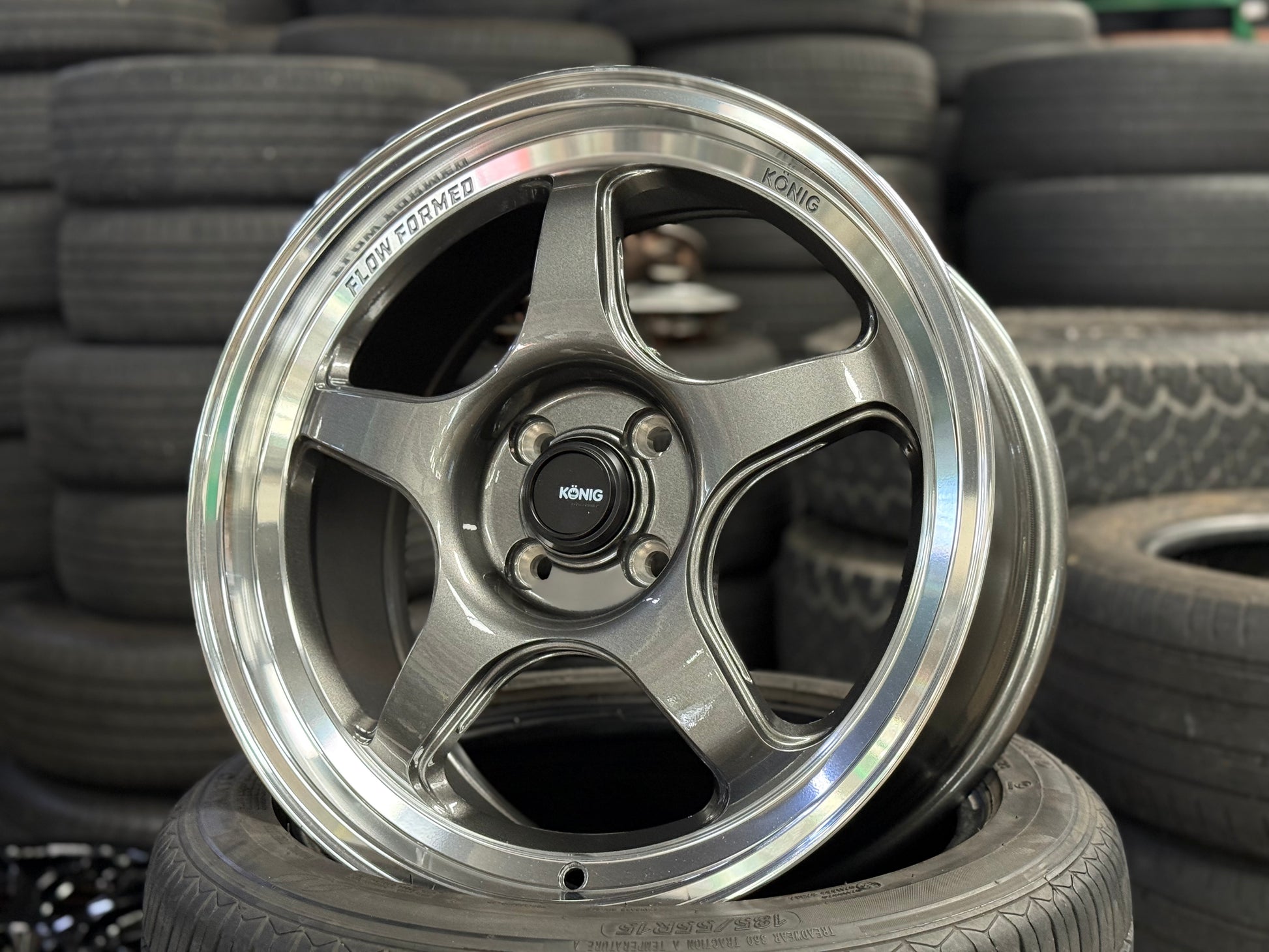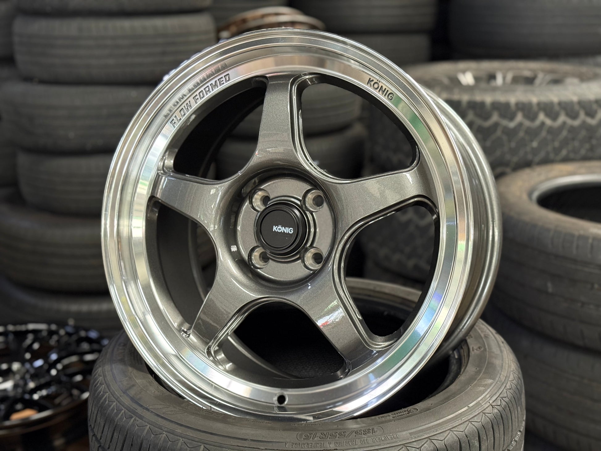 New 17X8 ET40 Konig Hyperspec Rim (4 wheel) Gunmetal Polished Lip 4X100